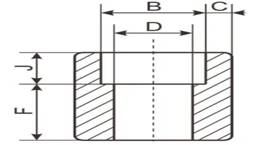 | Sr. No. | SIZE (NPS) | Socket Bore Dia(B) | Bore Diameter (D) | Socket Wall Thickness (C) | Socket Depth (J) | Laying Length (F) | |||